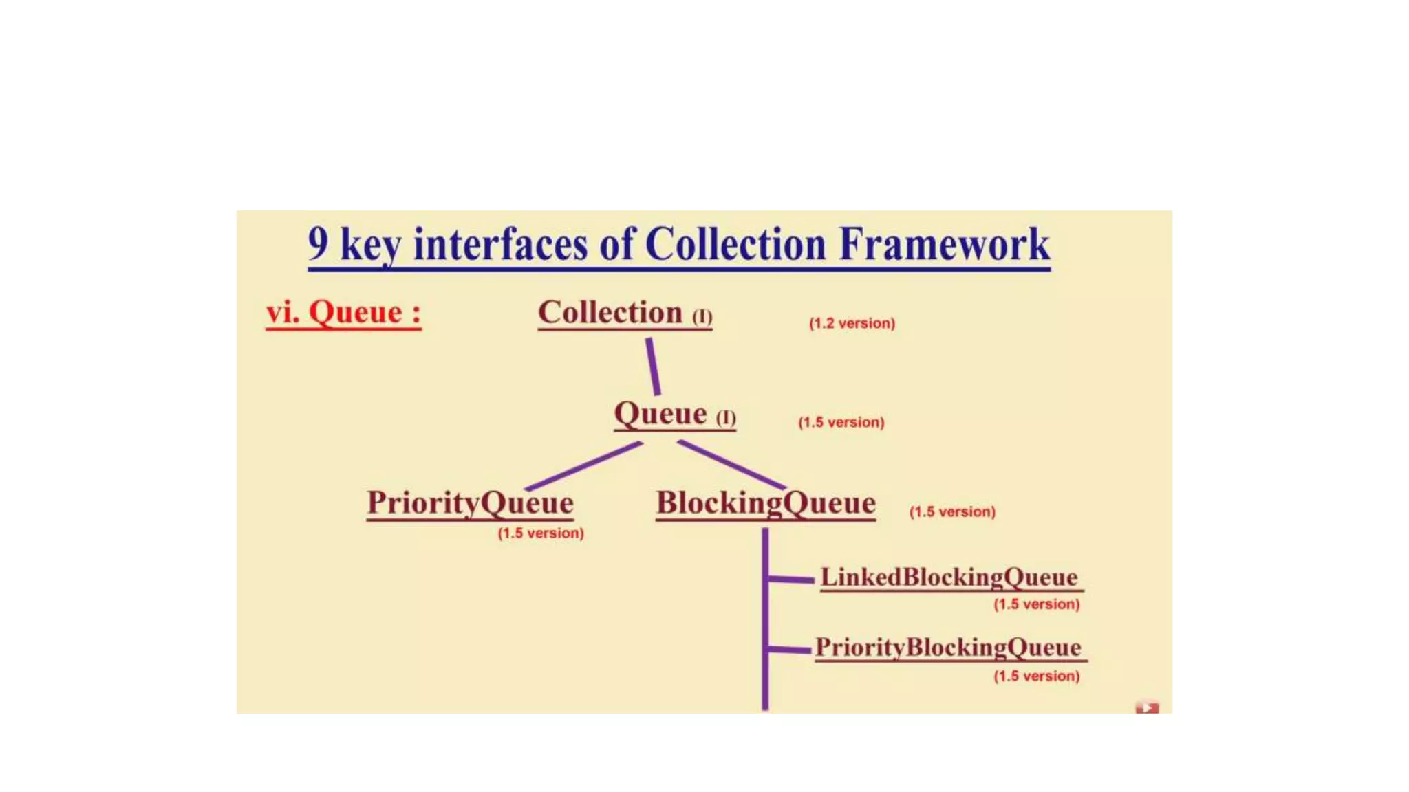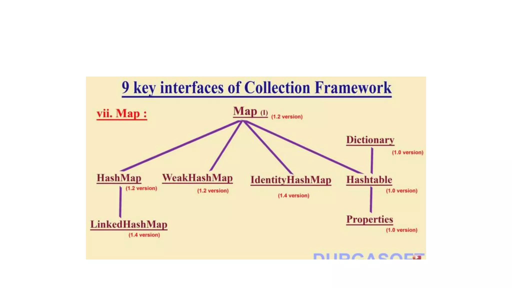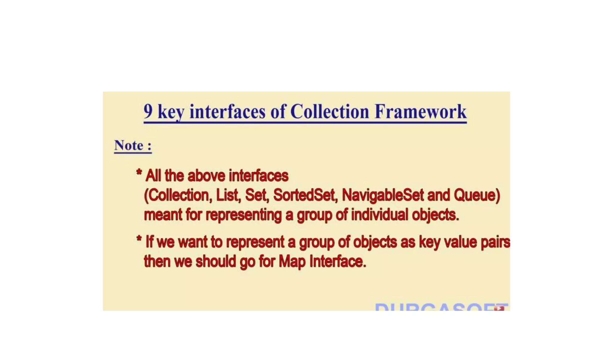 This document provides an overview of Java collections and key interfaces in the collection framework. It discusses Collection, List, Set, SortedSet, Queue, Map interfaces and their implementations like ArrayList, LinkedList, HashSet, TreeSet, PriorityQueue, HashMap, TreeMap. It covers differences between various collections, constructors, methods, and examples. Key differences between implementations like ArrayList vs LinkedList, HashMap vs HashTable are explained. Concepts like iterators, comparators are also summarized.