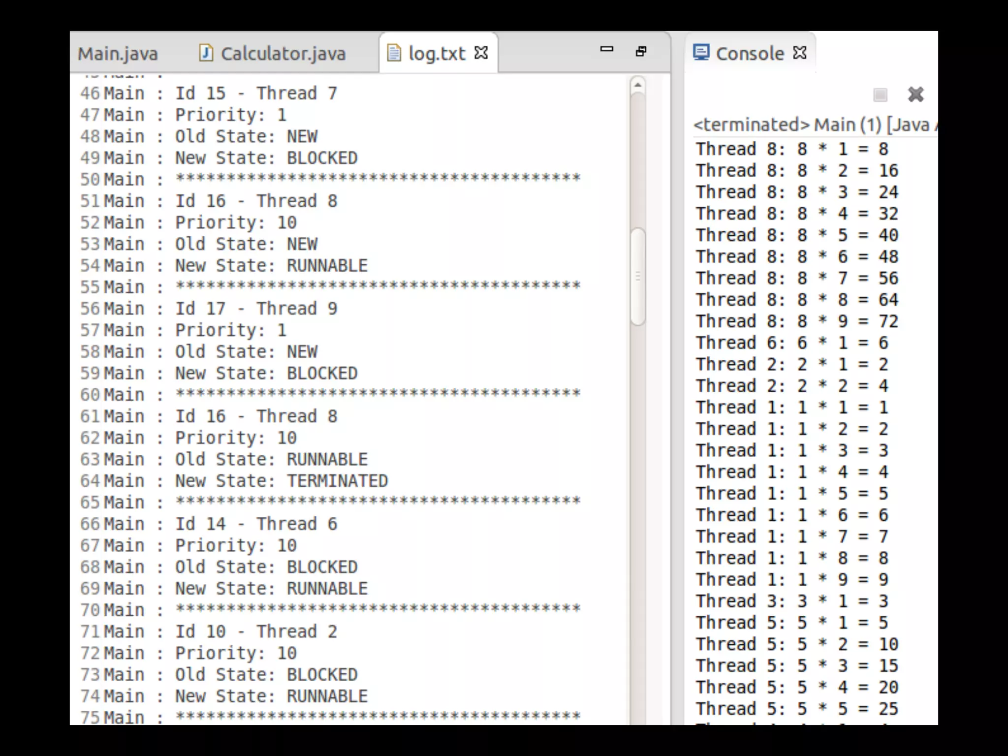 3. Interrupting, sleeping, resuming threads and waiting for thread finalization using join().