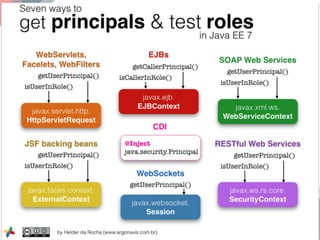 The document outlines the advancements and features in Java EE 8, with a focus on the new Java EE Security API (JSR 375) aimed at modernizing security for cloud applications. It discusses various enhancements such as alignment with web standards, cloud capabilities, improved CDI, and comprehensive security mechanisms that cater to user authentication and role assignment. Overall, it emphasizes a more user-friendly and standardized approach to security without vendor-specific configurations.