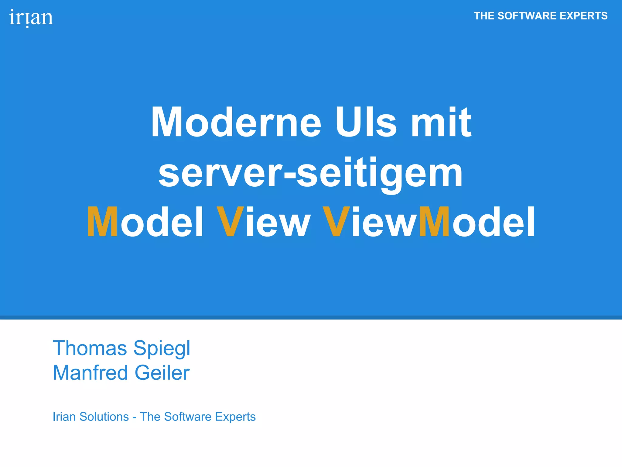 The document discusses the Model-View-ViewModel (MVVM) architectural pattern, emphasizing its advantages such as separation of concerns and improved testability. It introduces the Ankor framework, which supports the MVVM concept and facilitates event-driven programming, asynchronous processing, and bidirectional communication. Additionally, it outlines the technology stacks for client and server environments and describes various features of the Ankor framework including support for multiple client technologies and annotations for enhanced functionality.