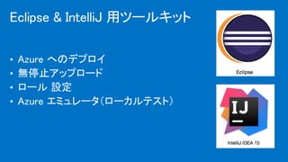 This document provides an overview of options for running Java workloads on Microsoft Azure including infrastructure as a service virtual machines with Oracle or Azul JDK, preconfigured application servers, Java web apps, containers with CoreOS and Docker, and tools for development and deployment from Eclipse, IntelliJ, and Jenkins. It also lists resources for learning more about Java on Azure like blogs, SDKs, courses, and support channels.