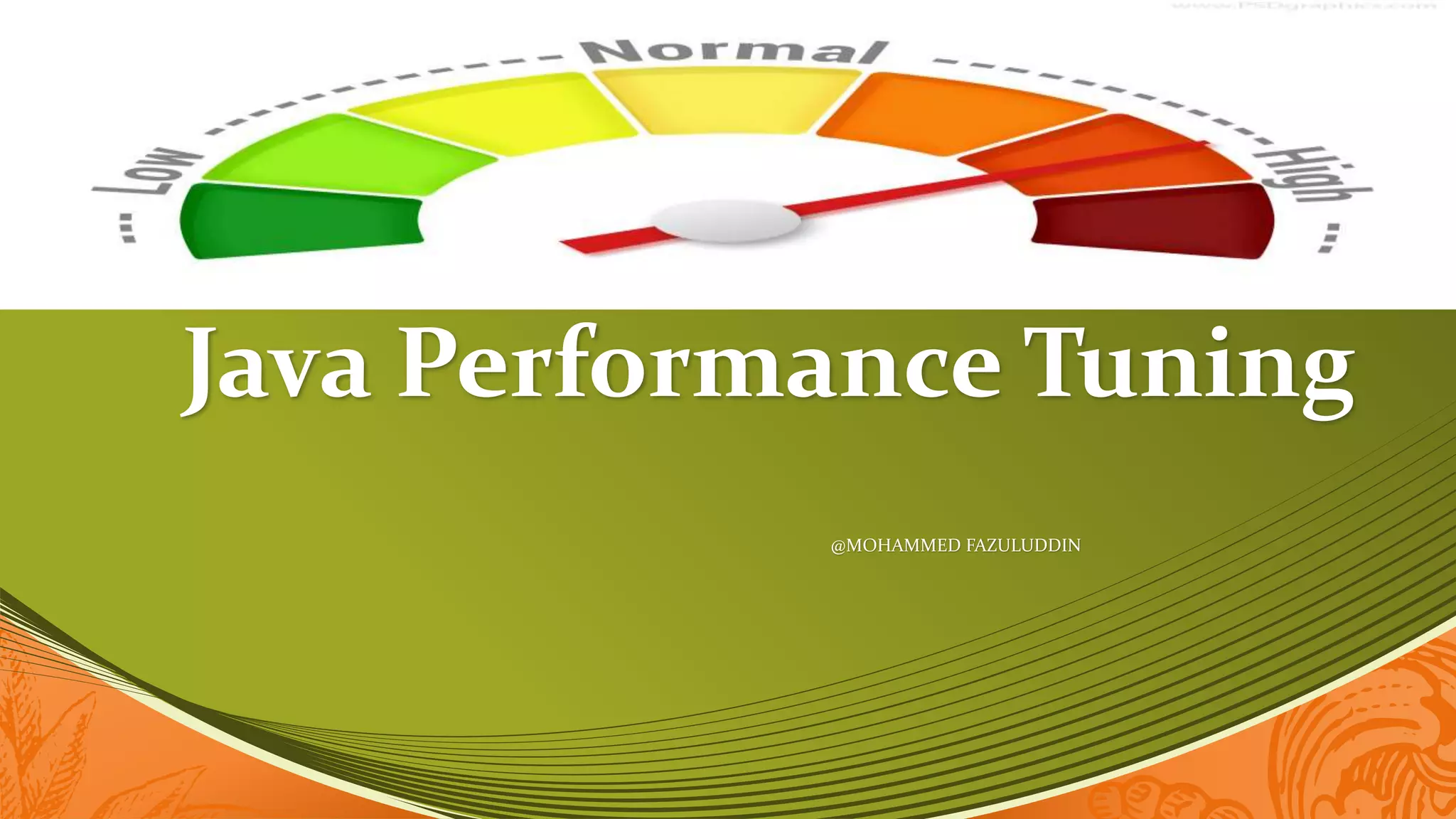 Java performance tuning involves diagnosing and addressing issues like slow application performance and out of memory errors. The document discusses Java performance problems and their solutions, tuning tips, and monitoring tools. Some tips include tuning JVM parameters like heap size, garbage collection settings, and enabling parallel garbage collection for multi-processor systems. Tools mentioned include JConsole, VisualVM, JProfiler, and others for monitoring memory usage, thread activity, and garbage collection.