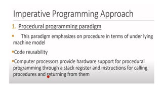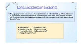 imperative, functional, logic, and object-oriented paradigms. Each paradigm