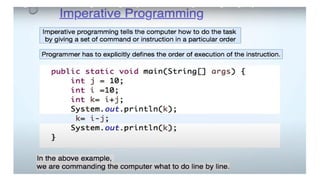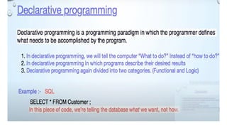 •Imperative Languages: These languages focus on how to execute tasks by specifying step-by-step