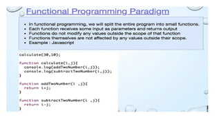 mathematical functions and avoid changing state or mutable data. Examples