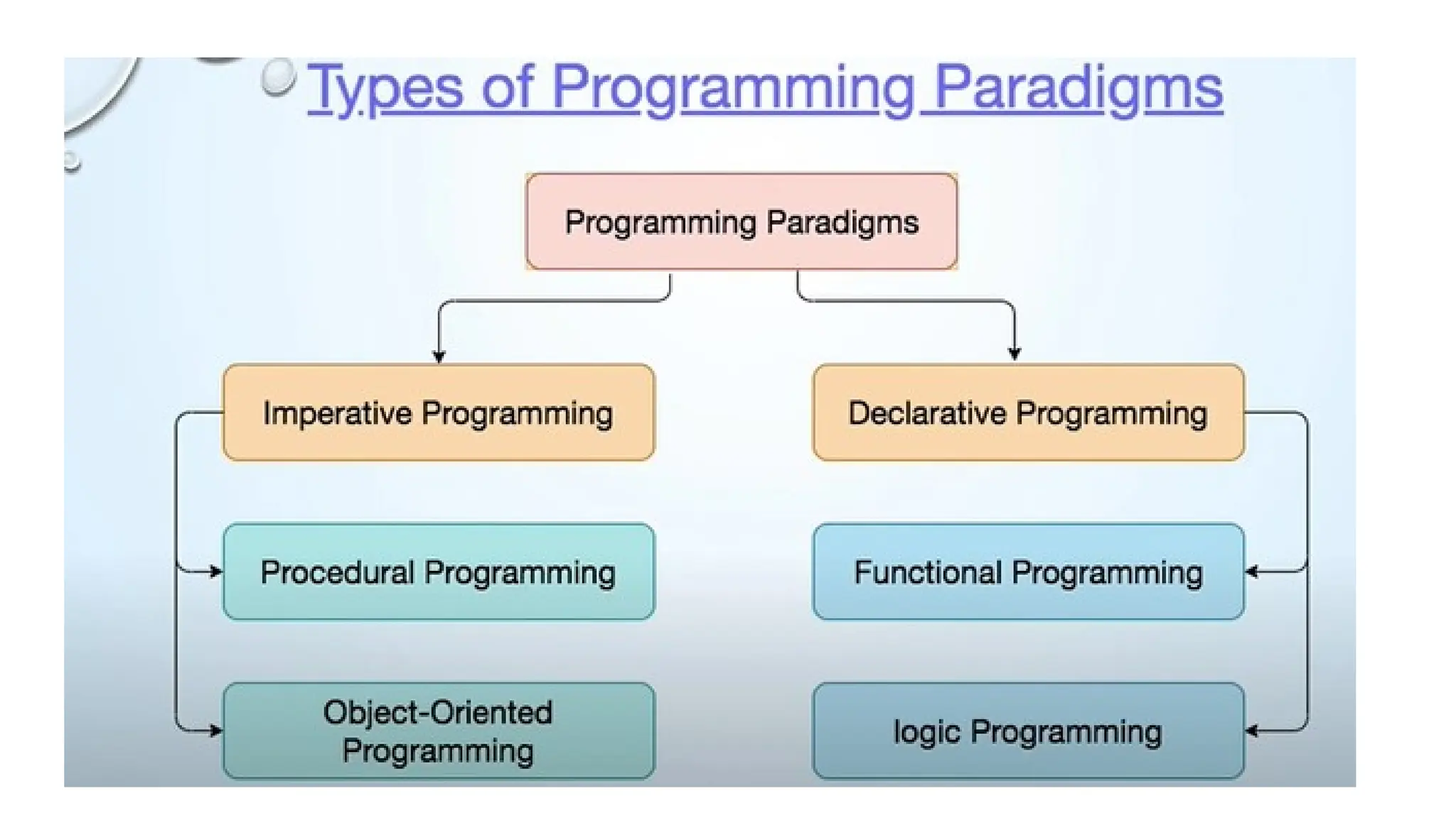 •Language Paradigms: These are different styles of programming, such as