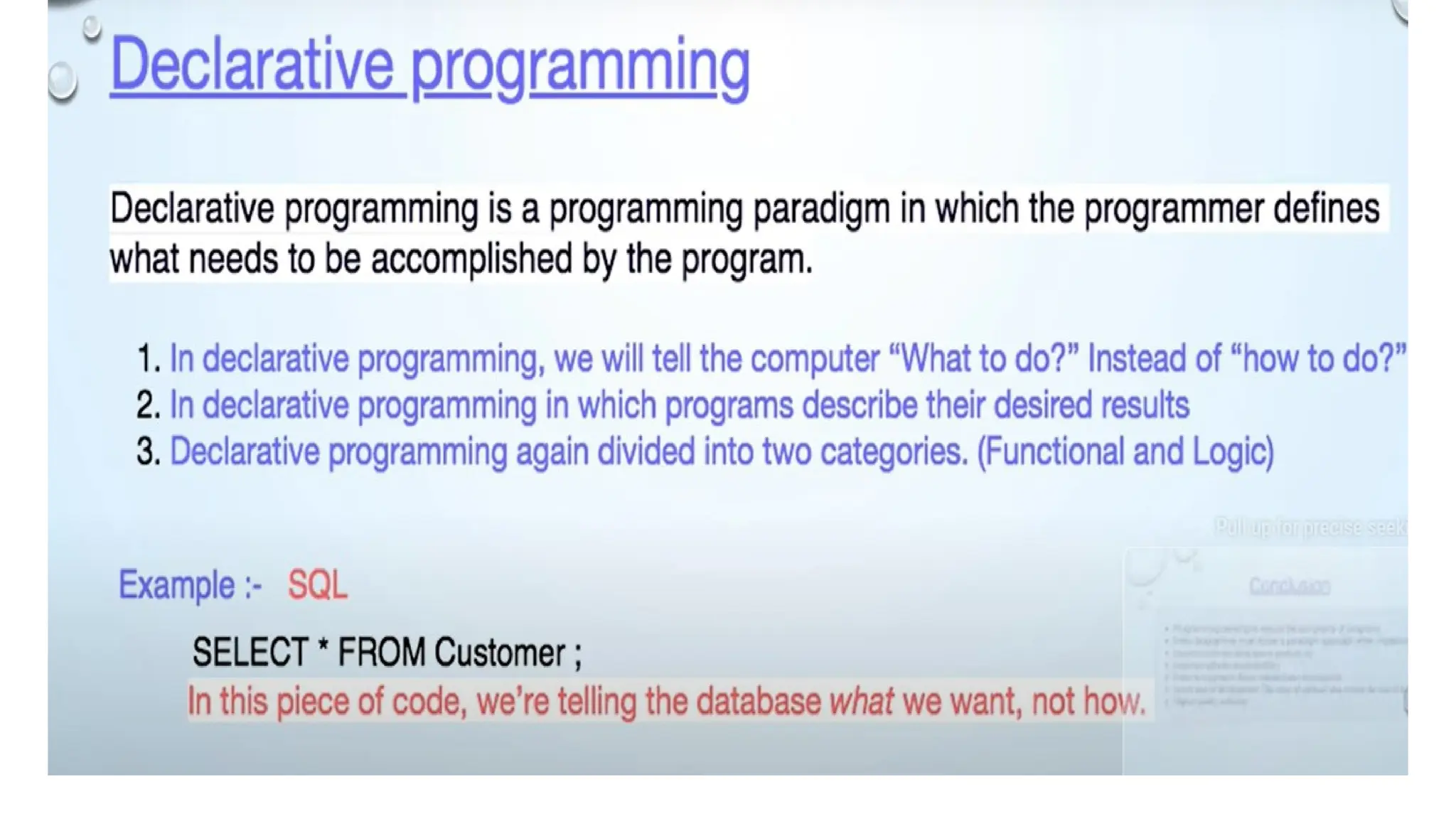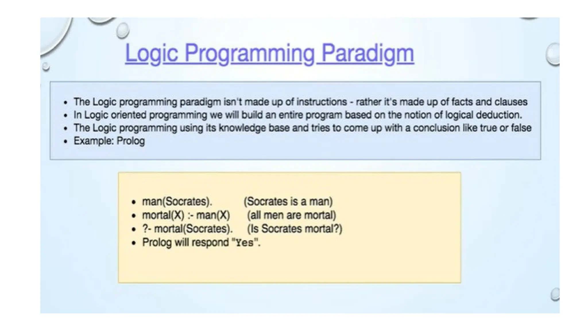 Parallel processing – Declarative programming paradigm: Logic,