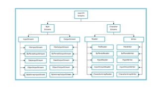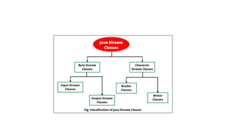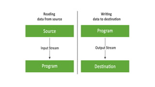 •In java, the stream-based IO operations are performed using two separate streams input stream and output stream.