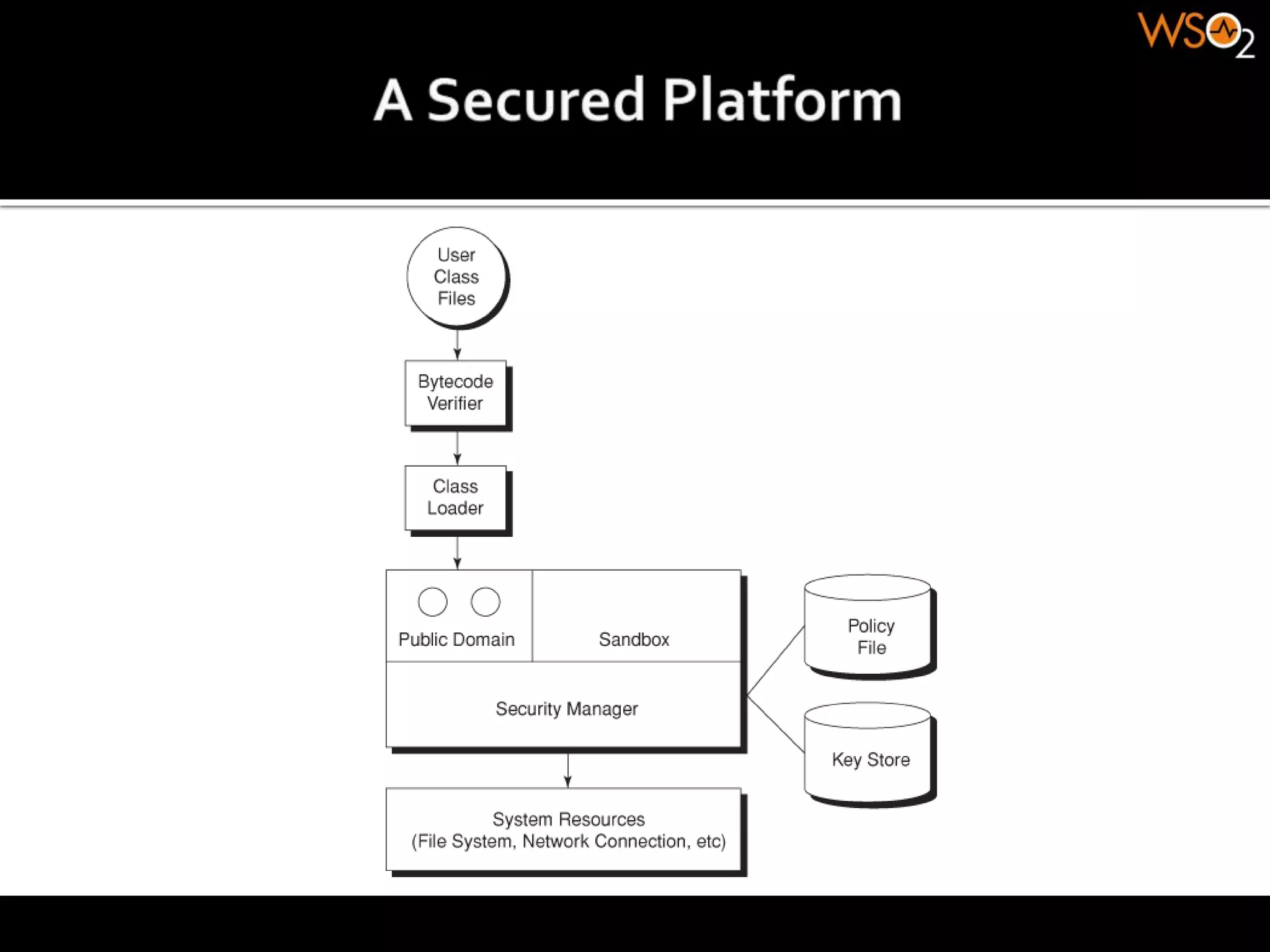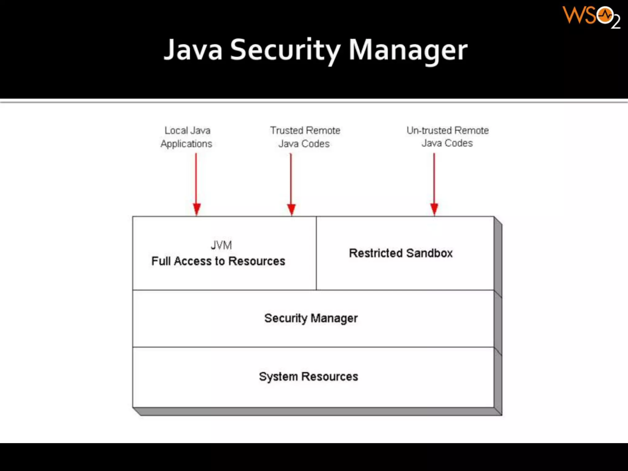 The document discusses Java security and how to configure a security manager and policy in Java. It explains that a security manager creates a sandbox for Java applications and uses a security policy to define permissions. The policy grants or denies permissions to code based on code location, trust via signing, and the user running the code. It provides examples of policy syntax and common permissions.