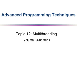 This document provides an introduction to multithreading concepts. It discusses using multiple threads to allow a bouncing ball animation program to start new balls even while others are still bouncing. It covers the basics of creating and running threads, including defining a runnable class and starting new threads. It also discusses key threading issues like thread states, scheduling, synchronization, and suspending/stopping threads.