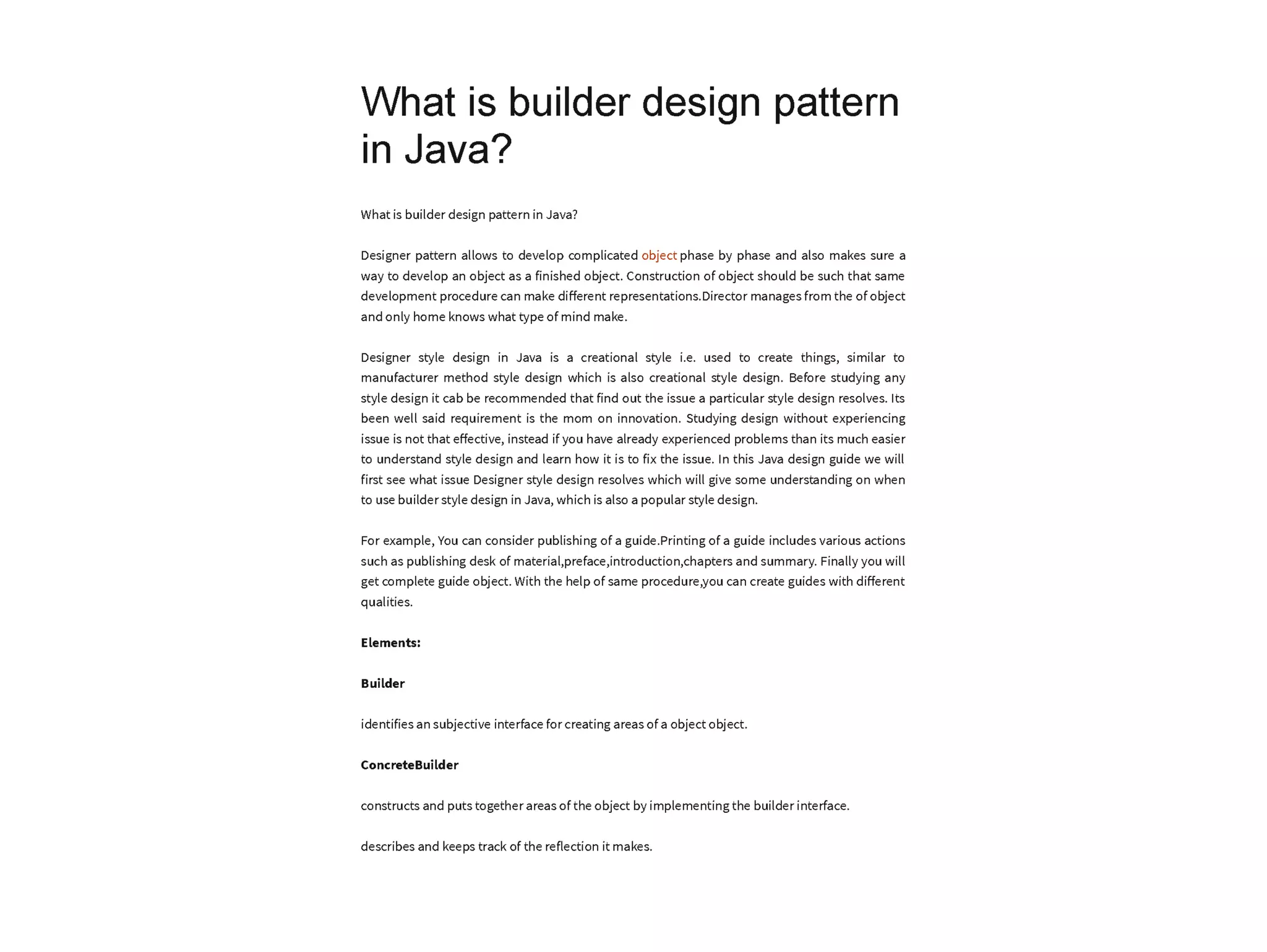 Designer pattern allows to develop complicated object phase by phase and also makes sure a way to develop an object as a finished object.
