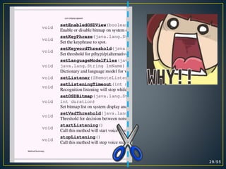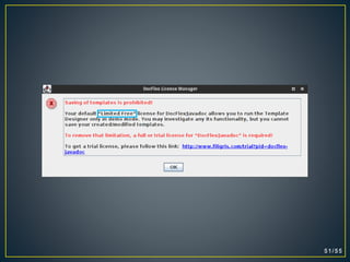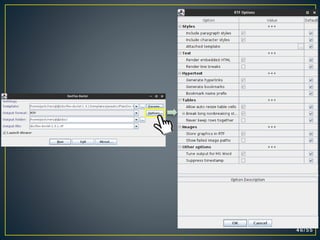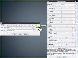 This document discusses how to generate documentation from Java source code comments in different formats like HTML, PDF, RTF using Javadoc and other third party tools. It provides step-by-step instructions on using Javadoc to generate HTML documentation and explains how to use HTMLDOC, PDFDoclet and Docflex-Doclet to convert the Javadoc output into PDF, PDF and RTF formats respectively.