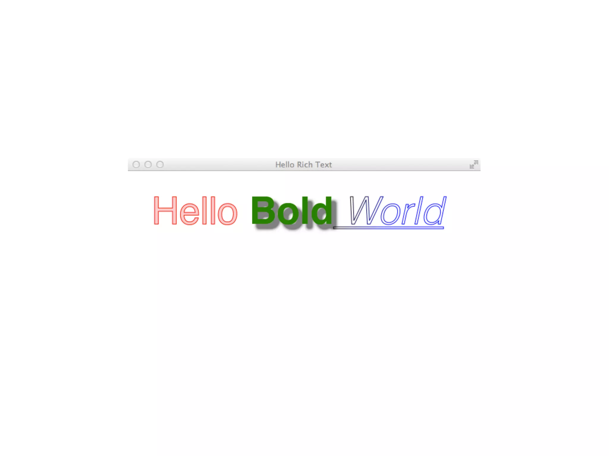 = "Helvetica"; double size = 64; TextFlow textFlow = new TextFlow(); Text text1 = new Text("Hello "); text1.setFont(Font.font(family, size)); Text text2 = new Text("Bold"); text2.setFont(Font.font(family, FontWeight.BOLD, size)); Text text3 = new Text(" ITALIC"); text3.setFont(Font.font(family, FontPosture.ITALIC, size)); textFlow.getChildren().addAll(text1, text2, text3); 太字 イタリック