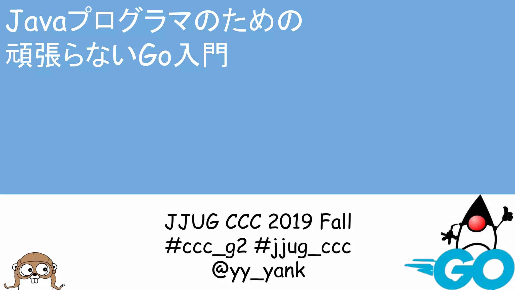 Javaプログラマのための頑張らないGo入門 1. 2. 3. 4. 5. 6. 7. 8. 9. 10. 11. 12. 13. 14. 15. 16. 17. 18. 19. 20. 21. 22. 23. 24. 25. 26. 27. 28. 29. 30. 31. 32. 33. 34. A Tour of Go