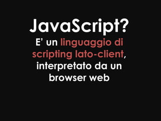 Il documento tratta lo sviluppo di applicazioni web utilizzando HTML e JavaScript, un linguaggio di scripting lato client che rende le pagine interattive. Vengono esplorati concetti come l'integrazione di JavaScript nella pagina HTML, la manipolazione del Document Object Model (DOM) e la gestione degli eventi. Inoltre, il documento menziona l'uso di jQuery per semplificare le operazioni con JavaScript.