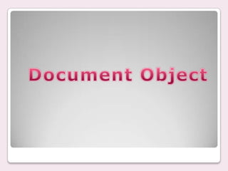 - The document object represents the HTML document loaded in the window and allows accessing and manipulating page elements.