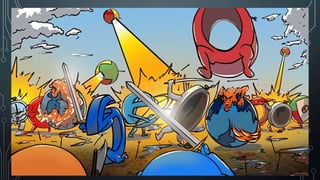JavaScript was created in 10 days in 1995 by Brandon Eich at Netscape to allow for interaction on web pages. It was based on Self and Scheme but used Java-like syntax. It went through several name changes before being standardized as ECMAScript. Important early developments included AJAX in 1999 and jQuery in 2006. Over time many frameworks were developed including Angular, React, and Vue. JavaScript has evolved from just client-side code to also power Node.js and be used in many non-browser environments due to its versatility and success of AJAX. It has endured many ups and downs but remains one of the most widely used languages.
