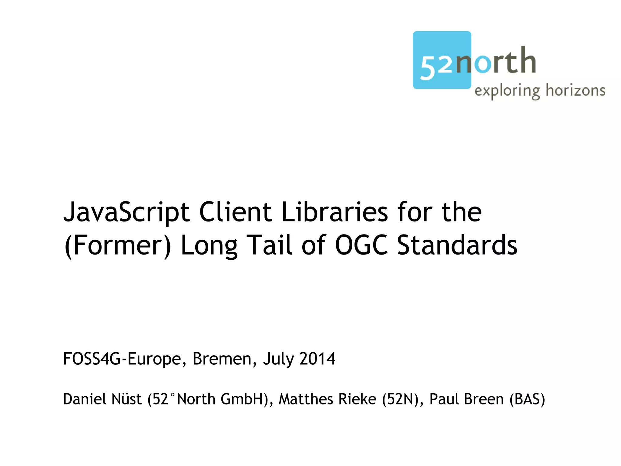 The document presents the development of two JavaScript libraries, sos.js and wps-js, aimed at facilitating access to OGC web services by providing user-friendly interfaces and minimizing reliance on specific frameworks. These libraries enable interactive execution of standardized processes and data visualization, promoting broader usage among application developers. Live demonstrations and GitHub repositories are available for users to explore the libraries' capabilities.