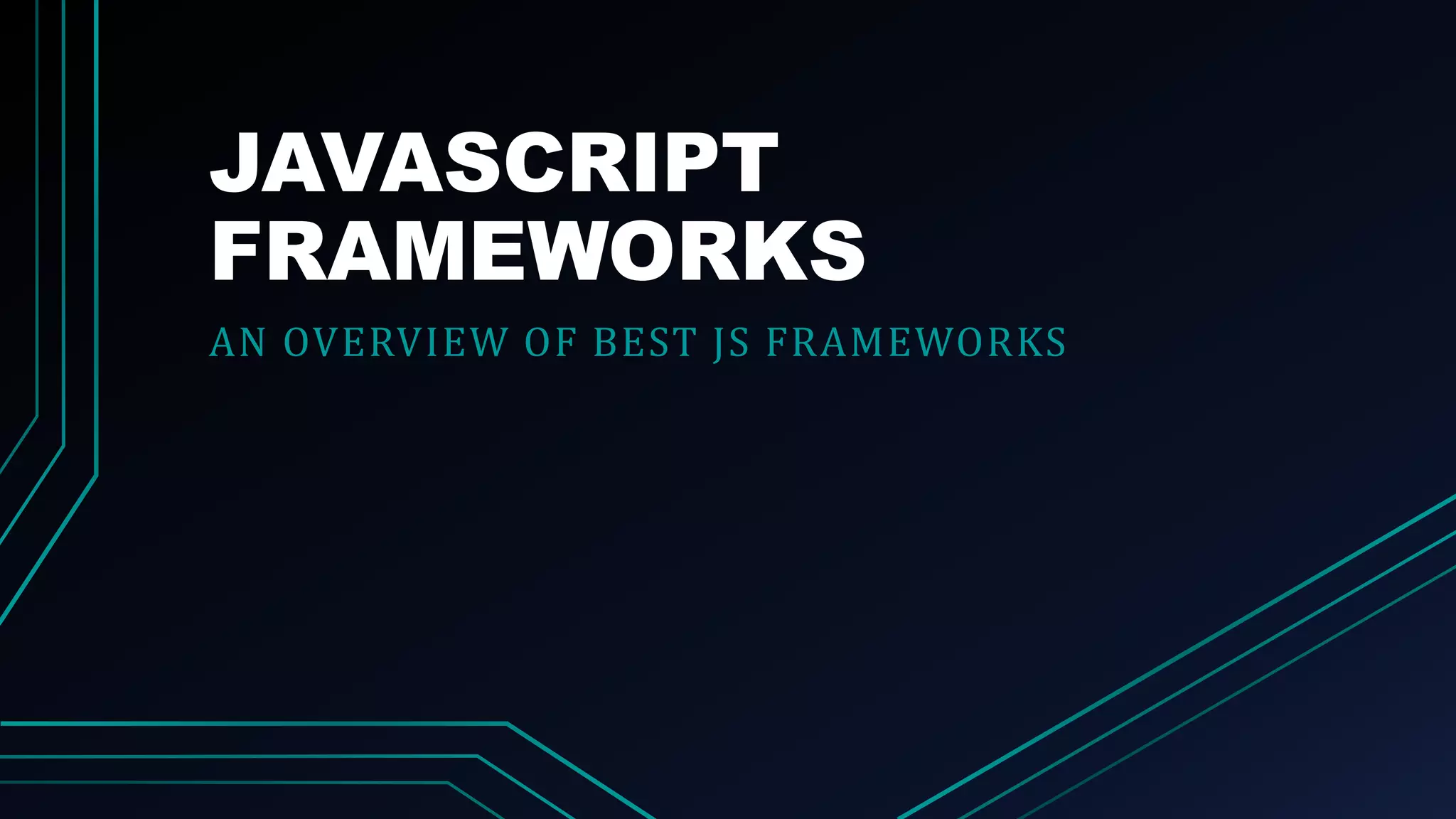 This document provides an overview of several top JavaScript frameworks including AngularJS, ReactJS, Vue.js, Node.js, and Backbone.js, highlighting their key features and usage in web development. Each framework has unique attributes such as two-way data binding in AngularJS, virtual DOM in React, and adaptability in Vue.js. The conclusion emphasizes the challenge of selecting the right framework and aims to assist readers in making informed decisions based on their needs.