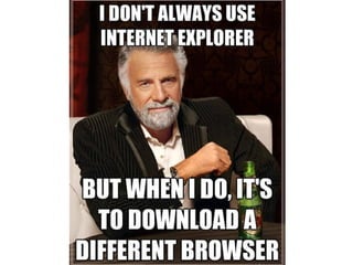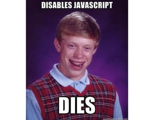 This document provides a summary of modern JavaScript compared to older techniques. It discusses how elements can be selected, lists can be found, and classes can be manipulated. It also briefly mentions the history of JavaScript and related technologies like jQuery, LiveScript, HTML5 and Node.js.
