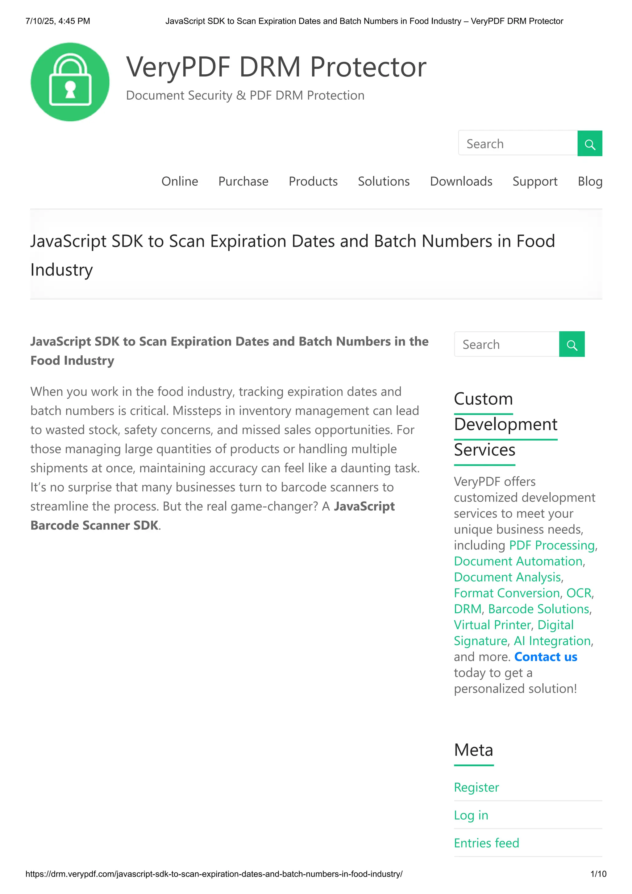 JavaScript SDK to Scan Expiration Dates and Batch Numbers in Food Industry