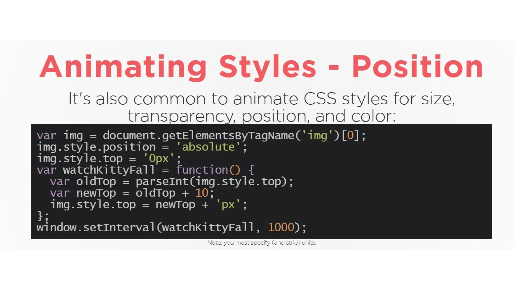 • Call that function every 50 milliseconds. Your cat should now be moving across the screen from left to right. Hurrah!