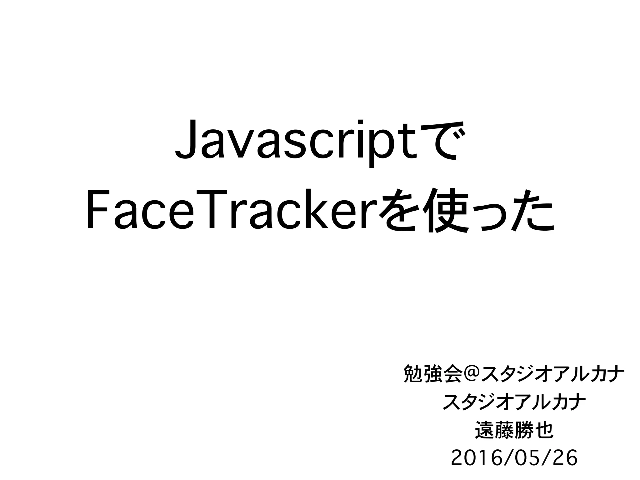 Javascriptで FaceTrackerを使った 勉強会@スタジオアルカナ スタジオアルカナ 遠藤勝也 2016/05/26