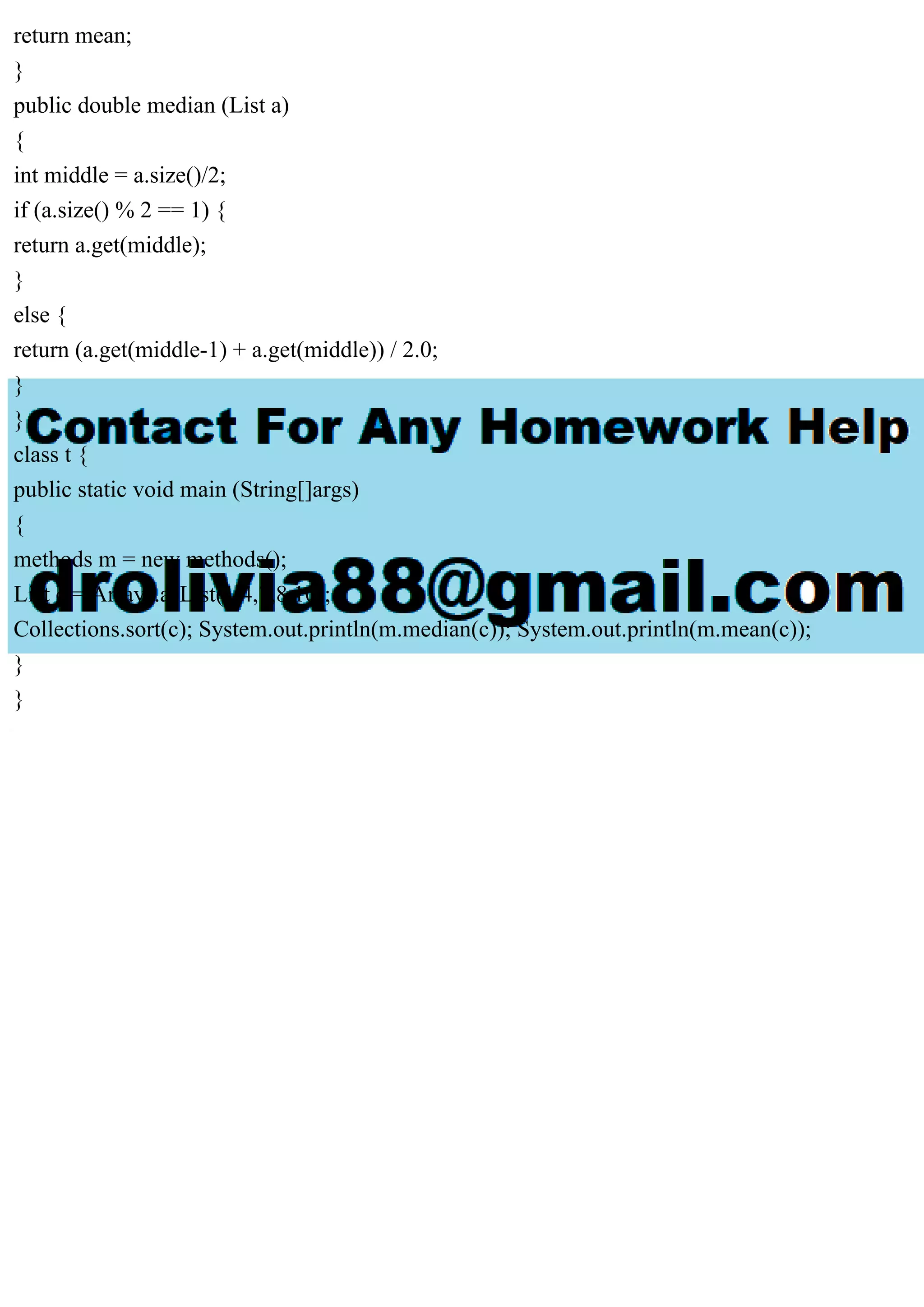 Collections.sort(c); System.out.println(m.median(c)); System.out.println(m.mean(c));
