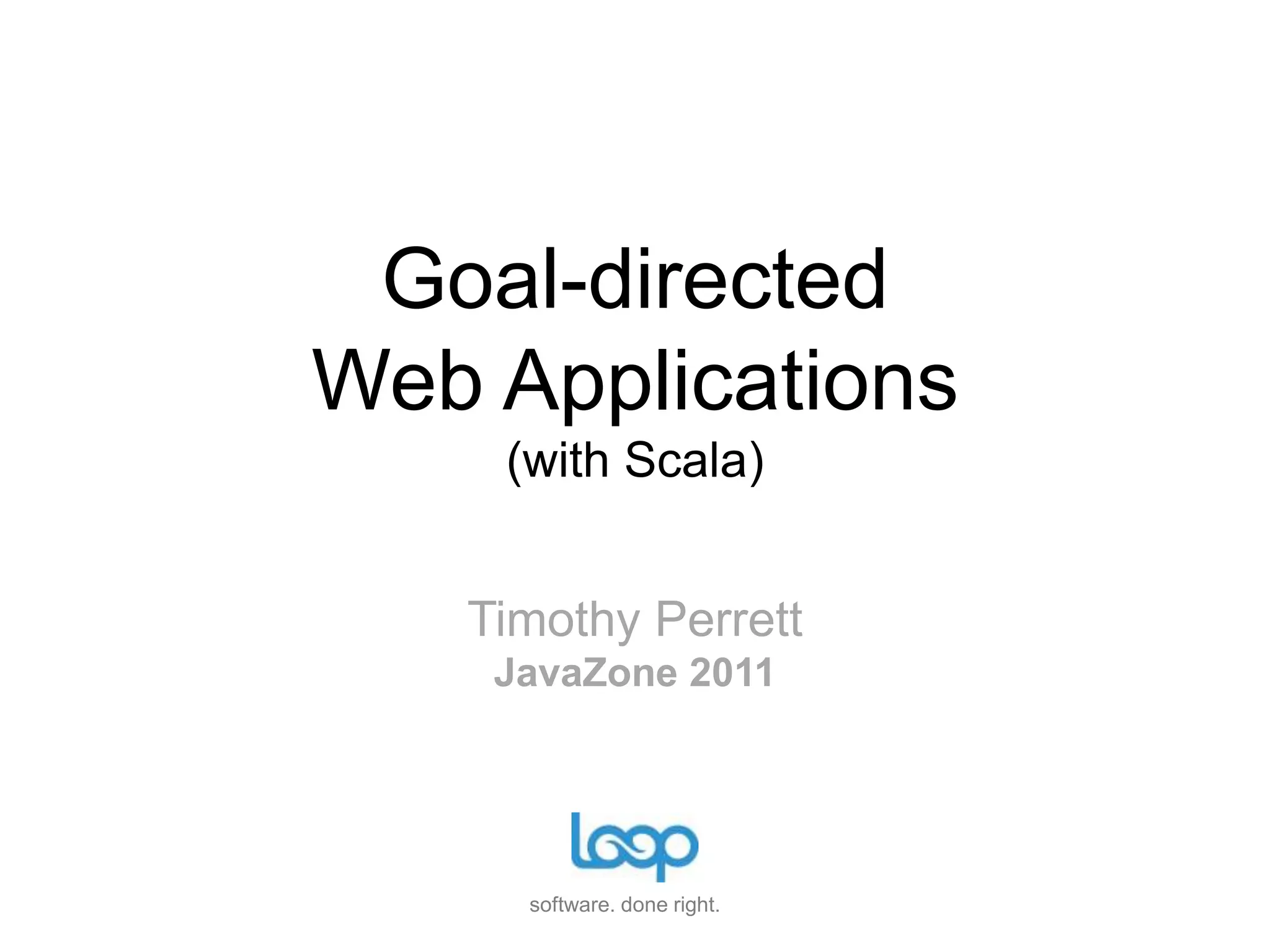 1) The document discusses building goal-directed web applications using Scala by modeling tasks as a series of inter-related functions.