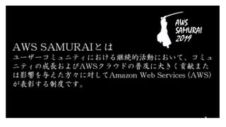 JAWS-UG 初心者支部#25 JAWS DAYS ReCap&AWS Samuraiライブ配信のスライドです。 https://jawsug-bgnr.connpass.com/event/172557/