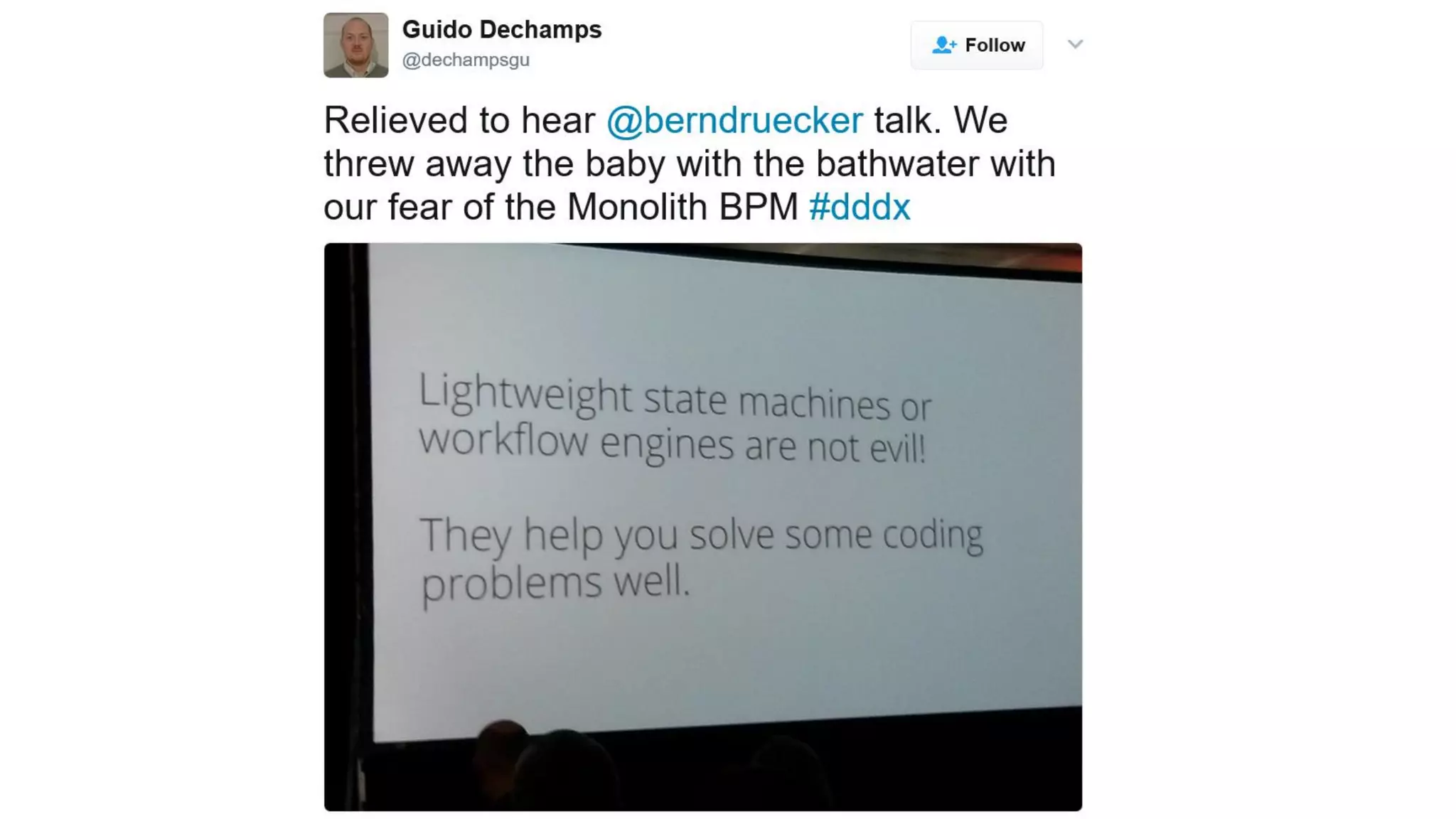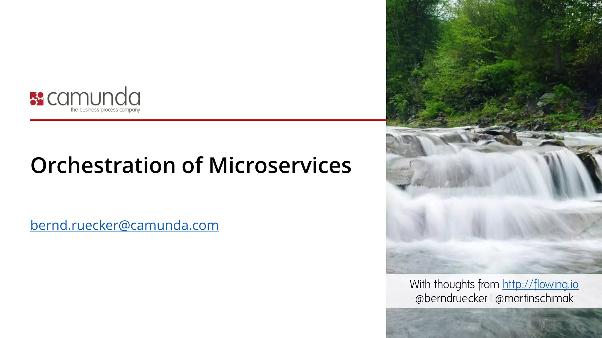 This document discusses orchestrating microservices using event-driven communication and process managers. It describes how microservices communicate asynchronously using events without direct knowledge of each other. Process managers listen for events, transform them into commands, and handle long-running workflows and state. This approach provides visibility into end-to-end processes while maintaining autonomy and decoupling between microservices. The document also cautions against over-engineering with complex BPM suites and recommends using lightweight, embeddable process engines.