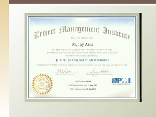 Jay Arca is a PMP consultant with experience in healthcare informatics project management. He has provided project management services for several large healthcare organizations in California, including the Los Angeles Department of Health Services, Orange County Health Care Agency, Catholic Healthcare West Daughters of Charity Health System, and hospitals in Long Beach and St. Mary's.