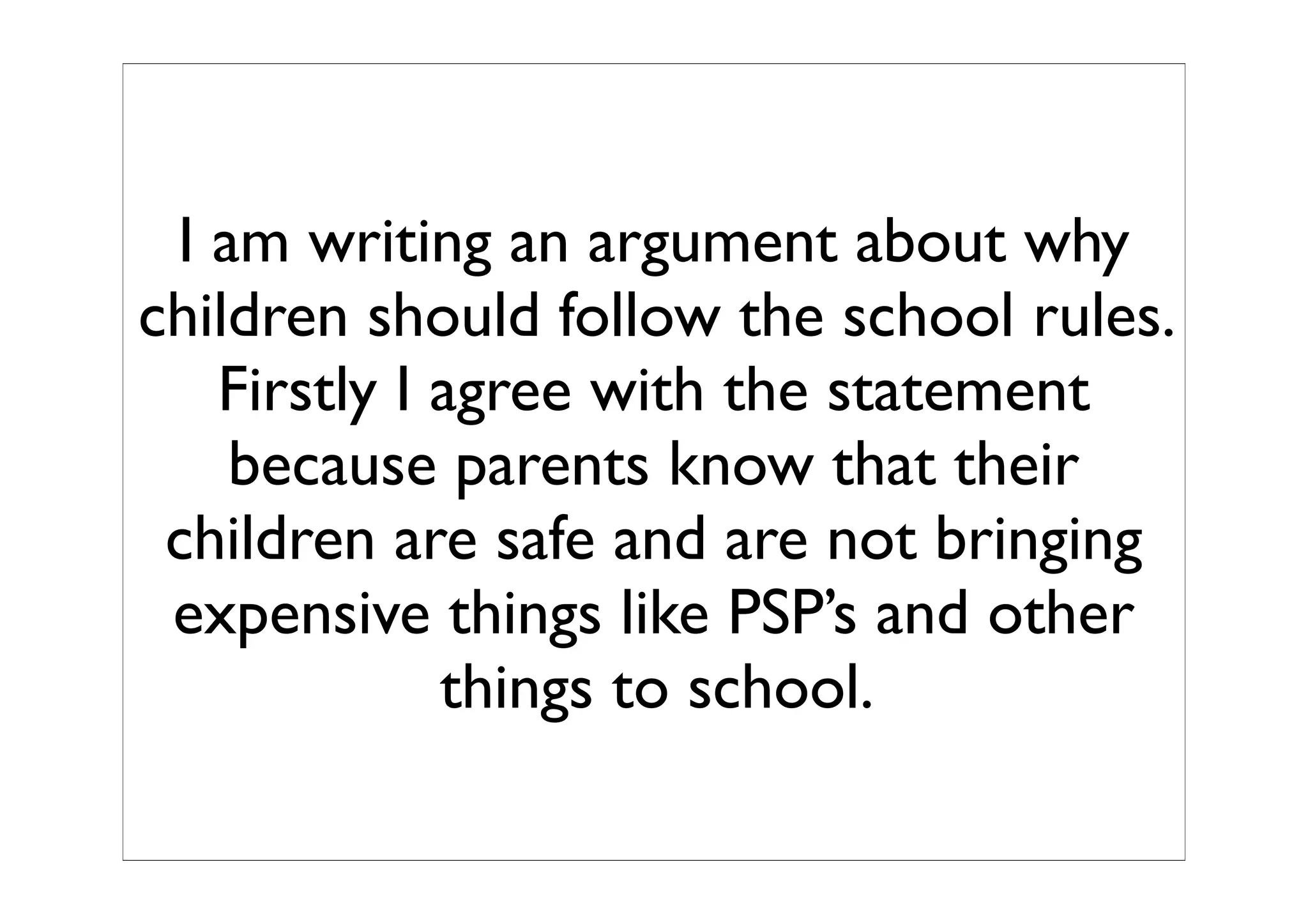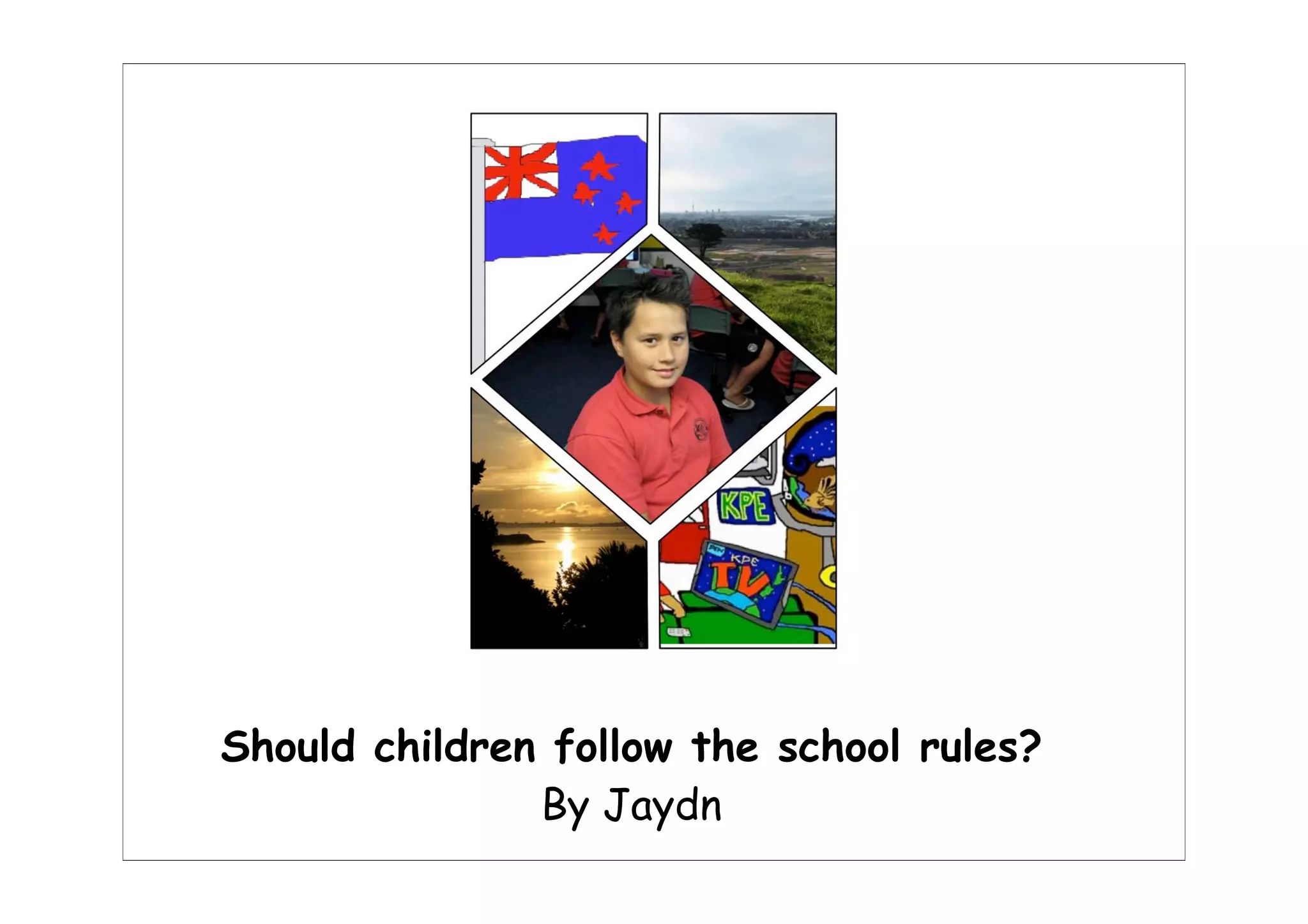 Jaydn argues that children should follow school rules for three key reasons: first, it keeps children safe and prevents expensive personal items from being brought to school; second, following rules will give the school a good reputation and more opportunities to earn special certificates and trophies; third, not following rules could lead to chaos and the school being disrespected, while following rules makes both children and teachers proud of the school.