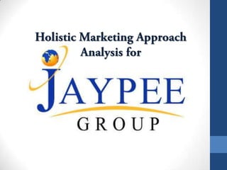 The document provides an overview of Jaiprakash Associates Limited, a large Indian infrastructure conglomerate. It discusses the company's founder and vision, as well as holistic marketing concepts including internal marketing, integrated marketing, promotional marketing, and relationship marketing. Jaiprakash Associates has business interests in engineering, construction, power, cement, real estate, hospitality, and education.