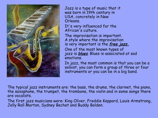Louis Armstrong was an influential American jazz trumpeter and vocalist born in 1901 in New Orleans. He was one of the most innovative figures in jazz history and considered one of the most popular musicians. Armstrong learned to play trumpet in a reformatory and began playing in Joe King Oliver's band in 1914. Between 1925-1928, Armstrong started his Hot Five and Hot Seven groups, whose recordings were hugely influential on the development of jazz. Known for making scatting famous, Armstrong continued performing up until his death in 1971 at age 69.