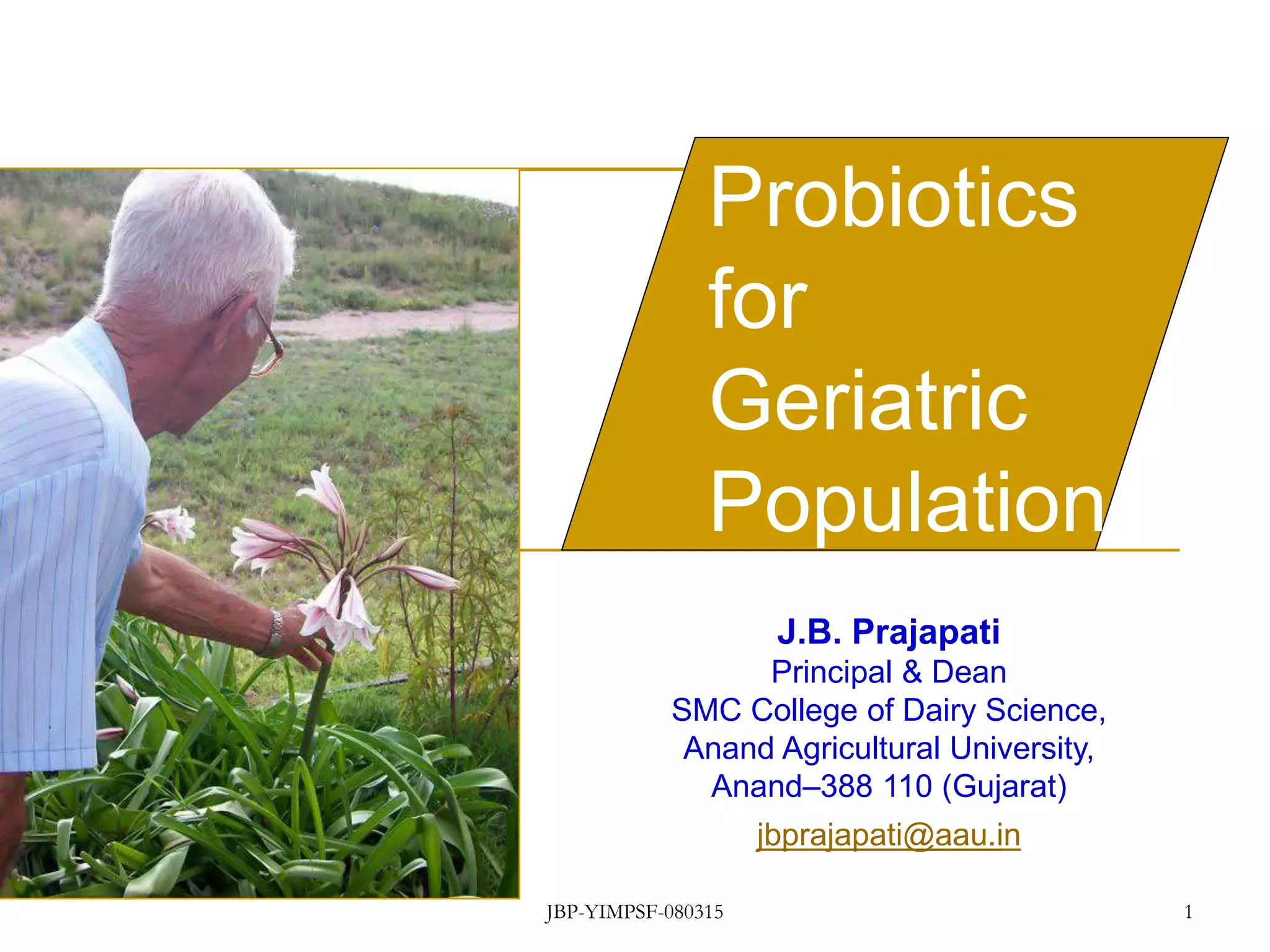 1) The document discusses the potential benefits of probiotics for the elderly population and summarizes several studies that have investigated the effects of various probiotic strains on the gut microbiota and immune system of elderly subjects.