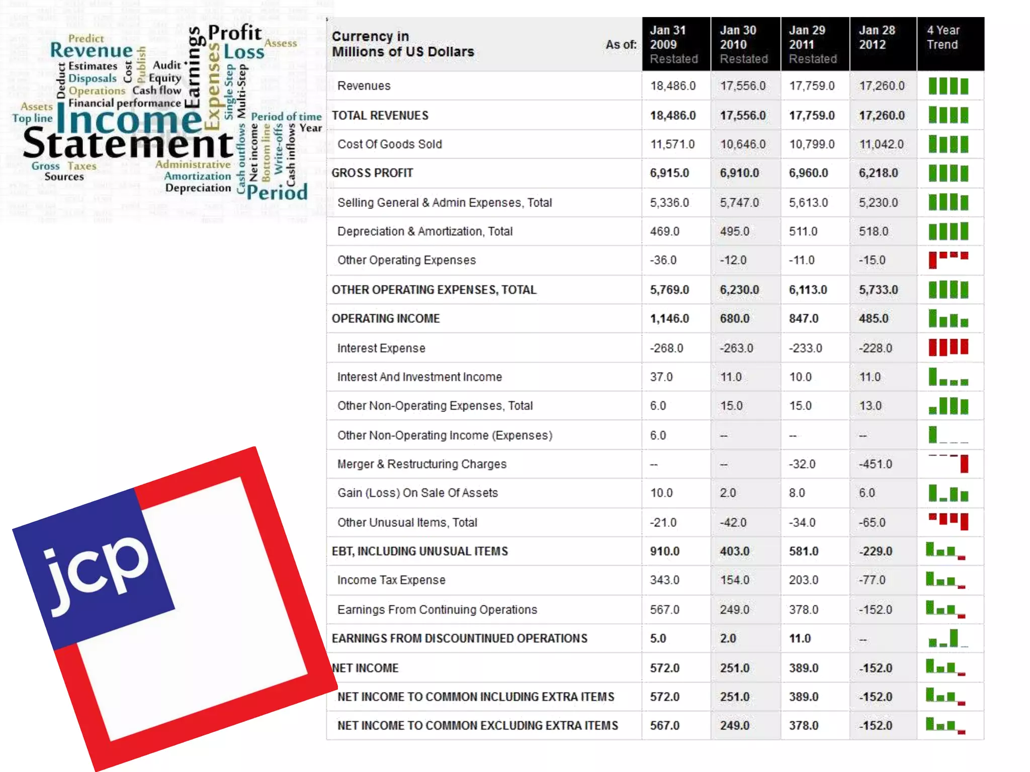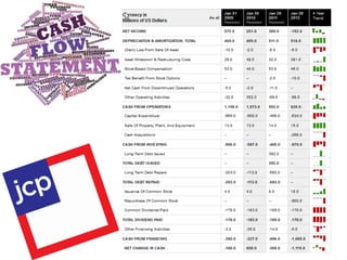 The document shows trends in financial ratios for a company over multiple years from 2008 to 2011. The current ratio, quick ratio, and cash ratio all decreased from 2008 to 2011, while the net income percentage decreased from 2008 to 2010 but then dropped significantly in 2011. Inventory turnover increased from 2008 to 2009 but then decreased in 2010 and 2011.