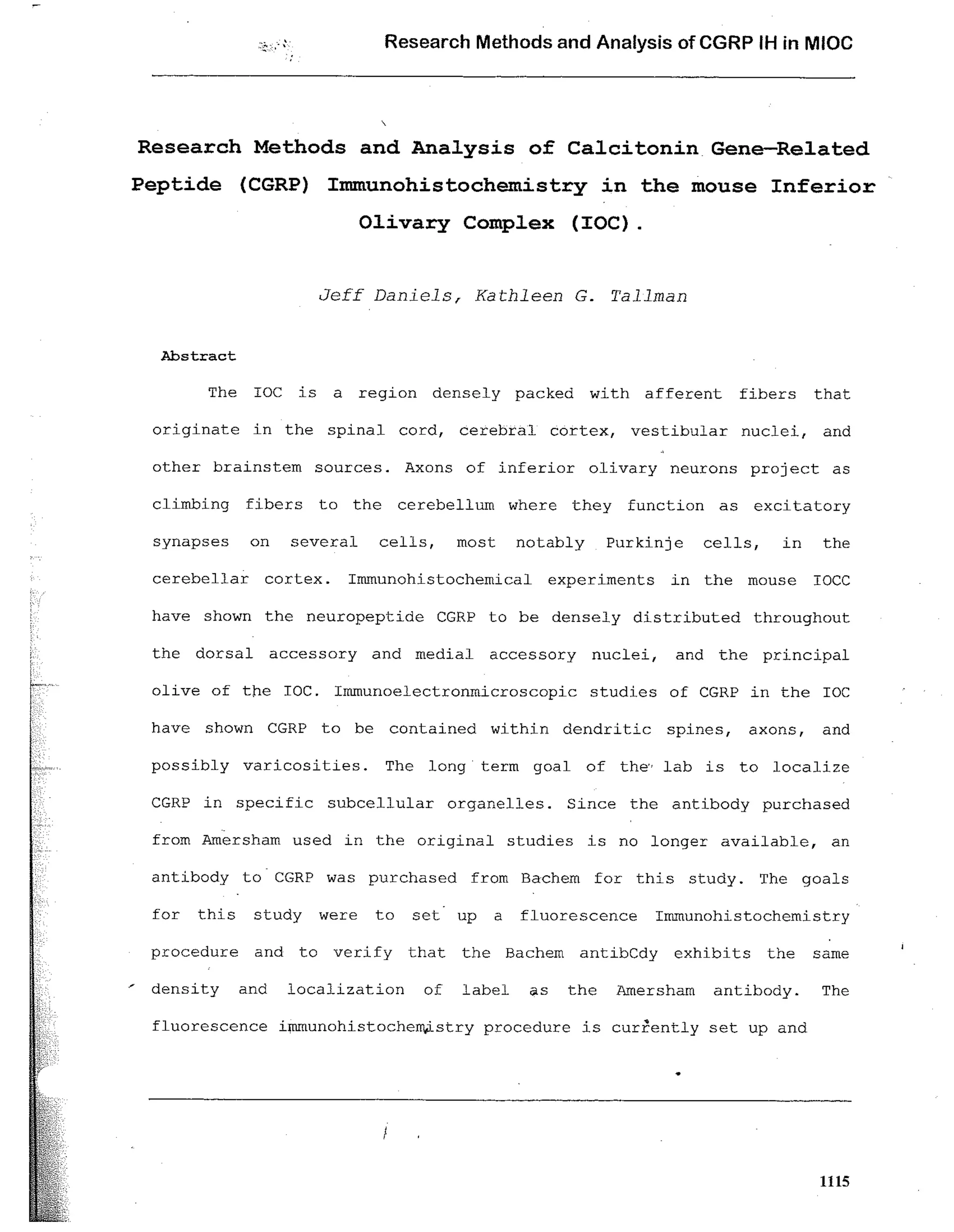 Research Methods and Analysis of CGRP in the mIOC - Jeff Daniels