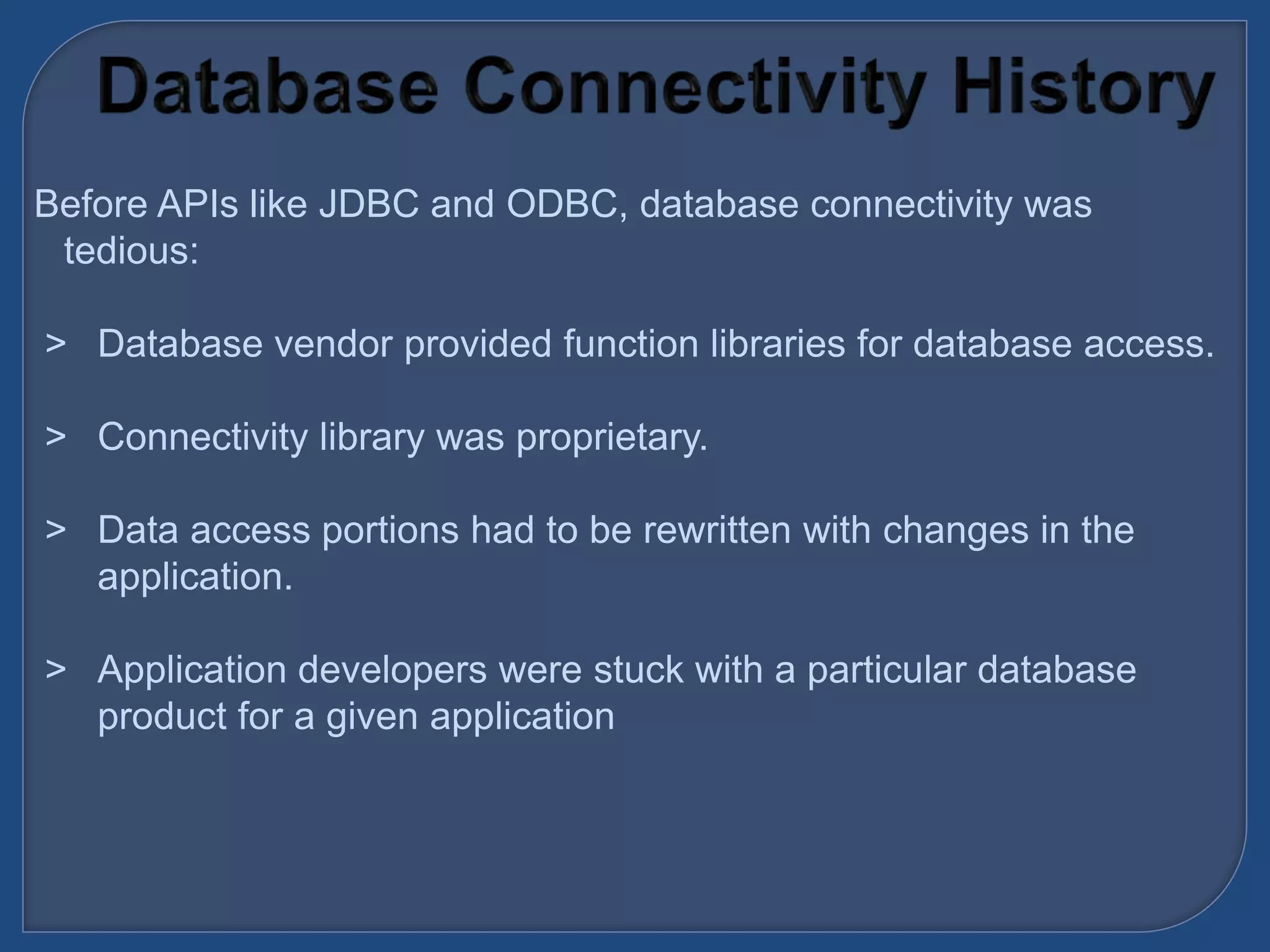 This document summarizes the history and concepts of database connectivity prior to and with the introduction of JDBC and ODBC. It discusses how database connectivity was previously vendor-specific and difficult, and how JDBC and ODBC standardized connectivity through open APIs. It then covers the key aspects of JDBC including its definition, tasks, support for different architectures, and types of JDBC drivers.