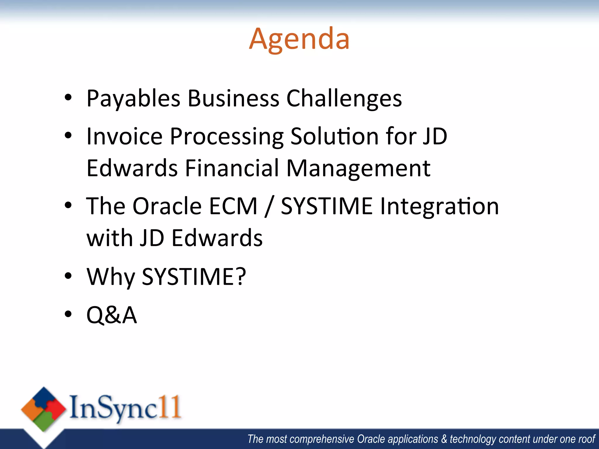 The document discusses an invoice processing solution for JD Edwards Financial Management using Oracle ECM and SYSTIME. The solution aims to reduce invoice processing costs and cycle times by automating document capture, extraction of invoice data, storage in a content repository, and routing invoices through approval workflows. Key benefits mentioned include eliminating manual data entry, centralized management of invoices, real-time visibility into processes, and faster exception resolution.