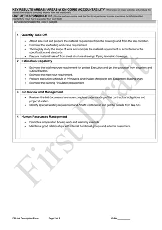 This document describes the job of an Estimation Engineer. The key responsibilities of the role include: