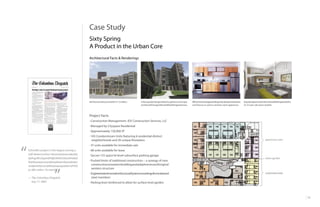 The document describes the redevelopment of an abandoned 100,000 square foot industrial building in Columbus' Italian Village neighborhood into luxury apartments called The Jeffrey. The building was originally constructed in 1924 as the world's largest manufacturer of mining equipment. It has been faithfully restored with many original materials remaining or reconditioned. The $34 million project will include 93 units through adaptive reuse of the historic building and 65 new construction units.