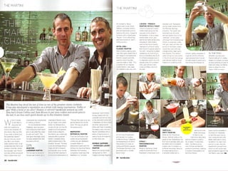 Jean Munos is a French bartender who has extensive experience working in bars throughout France and Australia. He is currently the head bartender at Zeta Bar in Sydney. The summary highlights his background of working in nightclubs in France and then moving around the country before relocating to Australia in 2006. It also mentions that he is known for representing Australia in international cocktail competitions and has managed some of Sydney's busiest bars.