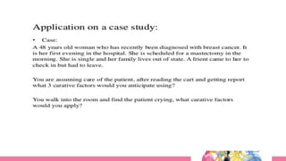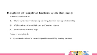 2) The theory proposes 10 "carative factors" that are the core of nursing care. These factors were later updated to 10 "caritas processes" that more openly display love and caring.