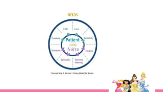 3) A major element is the "transpersonal caring relationship" between nurse and patient, which aims to help patients grow and become their best selves.