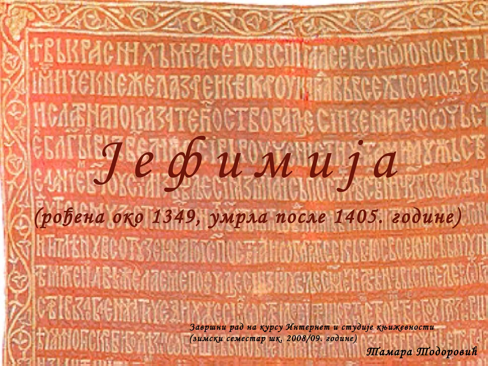 Π Π΅ Ρ ΠΈ ΠΌ ΠΈ Ρ Π° ( ΡΠΎΡΠ΅Π½Π° ΠΎΠΊΠΎ 1349, ΡΠΌΡΠ»Π° ΠΏΠΎΡΠ»Π΅ 1405. Π³ΠΎΠ΄ΠΈΠ½Π΅) ΠΠ°Π²ΡΡΠ½ΠΈ ΡΠ°Π΄ Π½Π° ΠΊΡΡΡΡ ΠΠ½ΡΠ΅ΡΠ½Π΅Ρ ΠΈ ΡΡΡΠ΄ΠΈΡΠ΅ ΠΊΡΠΈΠΆΠ΅Π²Π½ΠΎΡΡΠΈ (Π·ΠΈΠΌΡΠΊΠΈ ΡΠ΅ΠΌΠ΅ΡΡΠ°Ρ ΡΠΊ. 2008/09. Π³ΠΎΠ΄ΠΈΠ½Π΅) Π’Π°ΠΌΠ°ΡΠ° Π’ΠΎΠ΄ΠΎΡΠΎΠ²ΠΈΡ - 2.