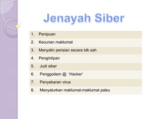 Kes jenayah siber di Malaysia semakin meningkat, dengan langkah-langkah seperti latihan forensik komputer dan pemantauan di alam siber dilaksanakan oleh pihak berkuasa. Kerjasama antarabangsa juga ditingkatkan untuk menghadapi ancaman siber, sambil penerapan pendidikan awal tentang jenayah siber dalam kalangan masyarakat dijalankan. Semua usaha ini bertujuan untuk membendung dan mencegah jenayah siber serta melahirkan masyarakat yang celik teknologi.