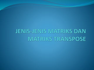 Dokumen tersebut membahas tentang matriks, termasuk definisi matriks, notasi matriks, jenis-jenis matriks berdasarkan jumlah baris dan kolom, pola, transpose matriks, dan sifat-sifat transpose matriks."