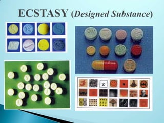 Dokumen ini membahas berbagai jenis narkotika, termasuk cannabis, kokain, metamfetamin, opiat, dan zat psikoaktif lainnya, serta efek psikologis dan fisiknya. Setiap zat dijelaskan dengan cara penggunaan, dosis rata-rata, dan dampak jangka panjang yang dapat menyebabkannya ketergantungan serta gangguan mental. Penyalahgunaan zat tersebut dapat memicu gejala intoksikasi dan risiko overdosis.