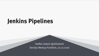 This document discusses Jenkins Pipelines, which allow defining continuous integration and delivery (CI/CD) pipelines as code. Key points:
